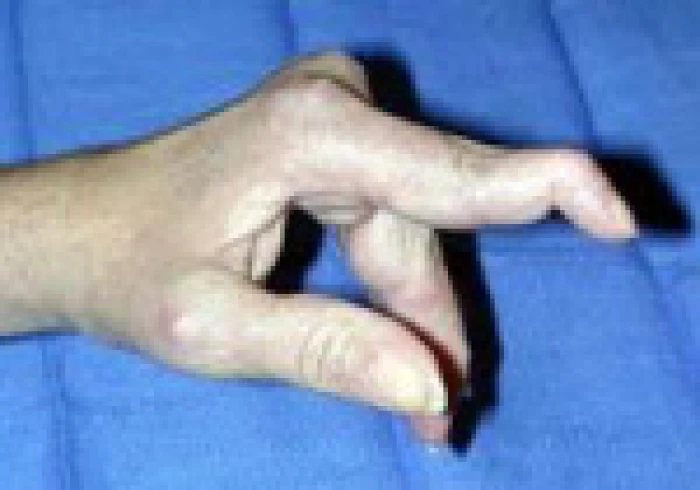 Swan neck deformity from tendon imbalance and laxity at the proximal joint.